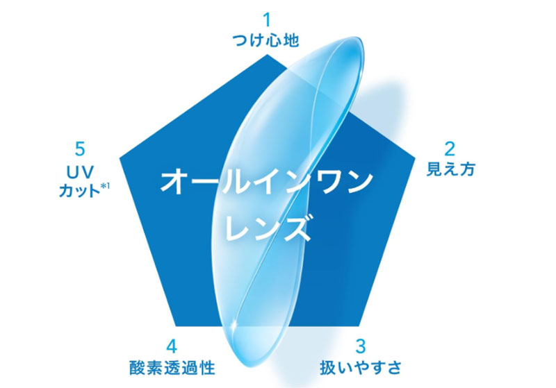 国内メーカー・メニコンの2weekレンズです。 シリコーンハイドロゲル素材で酸素透過率がDk/t 161と、2weekレンズの中ではトップクラスの数値です。