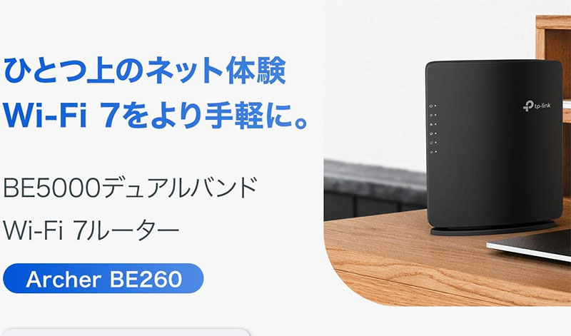 TP-Link WiFi7ルーター Archer BE260 BE5000