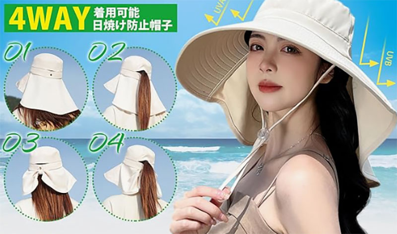 帽子専門店の販売員にリサーチしたところ、「UPF50+表記があるもの」と「つばの広さが7cm以上」が選ぶ基準として推されていました。この2つを満たしていれば、顔から首まで広くガードできる計算になります。