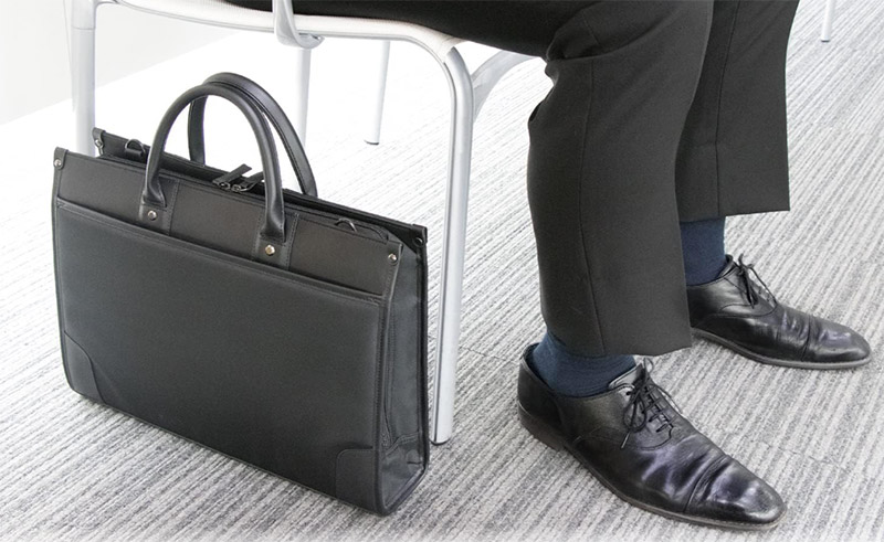 打ち合わせ中、床に置いたバッグがクニャッと倒れると、一気にだらしなく見えます。