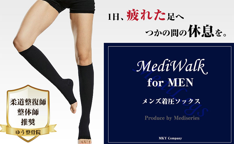 第1位:MKY Company 着圧ソックス メンズ メディウォーク ハイソックス つま先なし