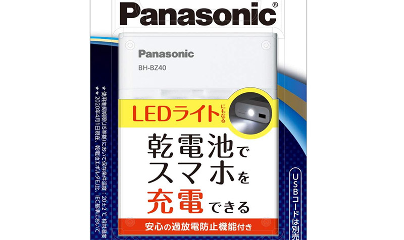 第1位:パナソニック LEDライト搭載 乾電池式モバイルバッテリー BH-BZ40K