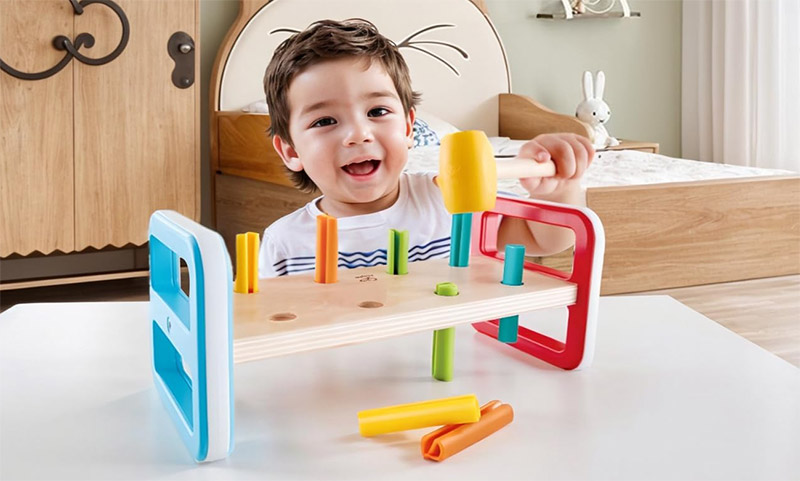 机をスプーンで叩き始めたら、ハンマートイの出番。今回は1〜2歳の子が夢中になる人気の5本を、使い勝手から比較します。